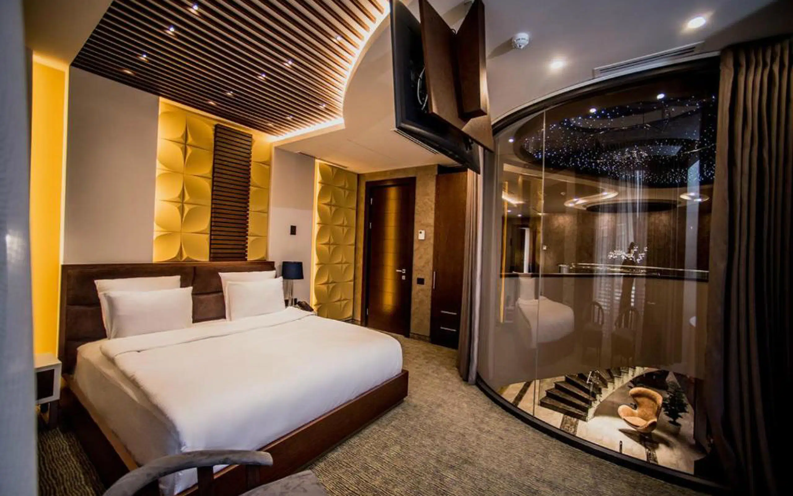 Это место, где потрясающий пол, освещение, дизайн стен и изысканная мебель великолепно сочетаются так, чтобы впечатлить наших дорогих гостей и сделать их пребывание незабываемым. Комфорт отеля, продуманные штрихи и индивидуальное обслуживание являются гарантией теплой и домашней атмосферы.